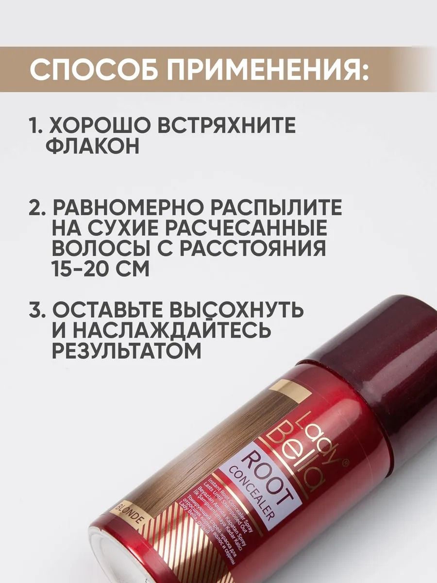Lady Bella Blonde — это эффективное решение для моментального маскирования отросших корней и седины. В отличие от стойких красок, требующих долгого процесса и агрессивной химии, этот спрей работает по принципу прямого пигментирования.